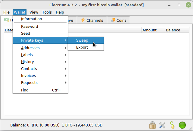 Accepting the bitcoin gift is done per below. Open your wallet and click Wallet ā Private keys ā Sweep.