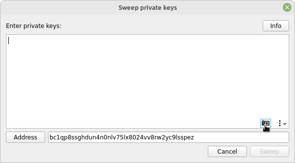 Once you see a long string of numbers and letters in the āEnter private keys:ā section, click Sweep. The next window will pop up.